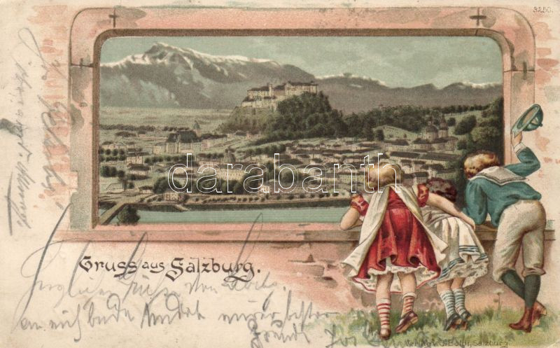Salzburg, children, Emb. litho https://www.darabanth.com/de/182-Fernauktion/182.0/Ansichtskarten/Osterreich~400420/Salzburg-children-Emb-litho~II456206