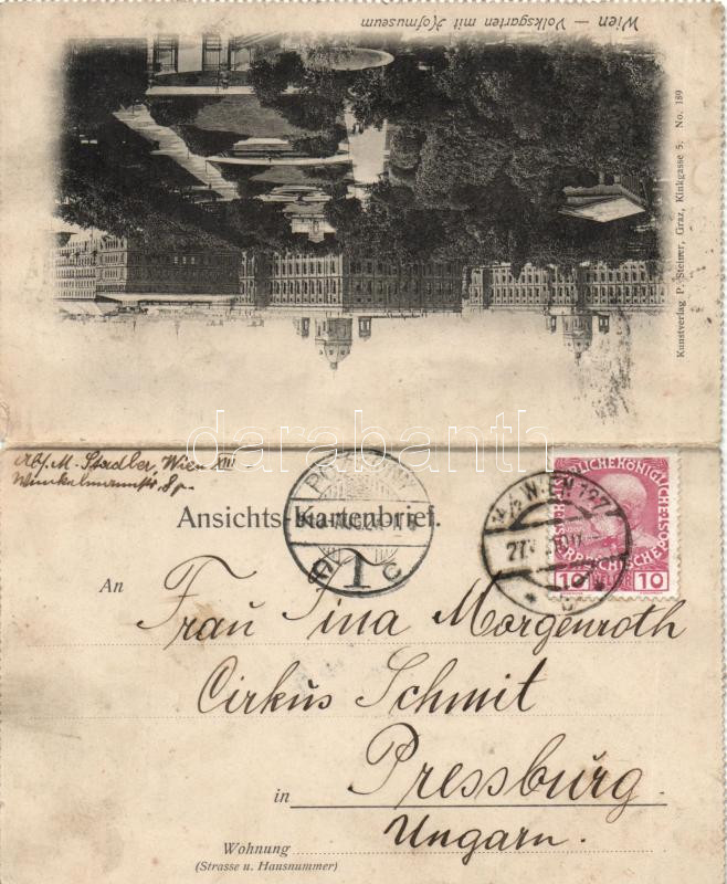 Beschreibung: Vienna Volksgarten park, museum; folding card (wet damage)