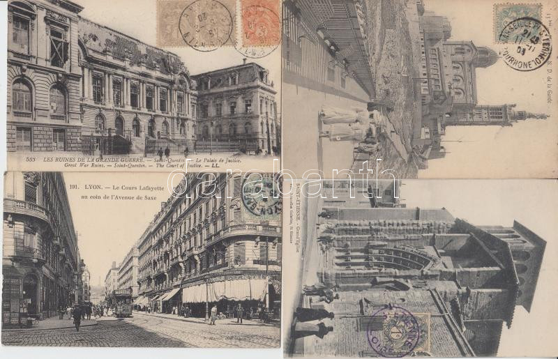 Beschreibung: 4 db régi, francia városképes lap: Saint-Étienne, Lyon, Paris, Marseille