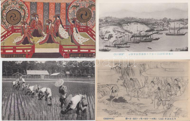 53 db régi, főleg használatlan, érdekes japán képeslap: városképek, tájképek, vallásos és folklór lapok / 53 interesting, mainly unused Japanese postcards: landscapes, cityscapes, religious and folklore postcards