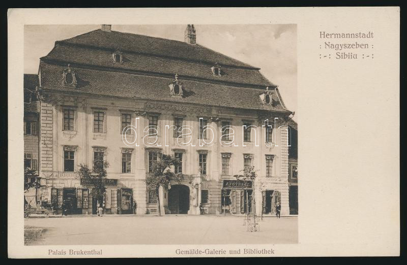 Nagyszeben Brukenthal palace, Art Gallery and library, pharmacy https://www.darabanth.com/de/182-Fernauktion/182.0/Ansichtskarten/Siebenburgen~200007/Nagyszeben-Brukenthal-palace-Art-Gallery-and-library-pharmacy~II631191