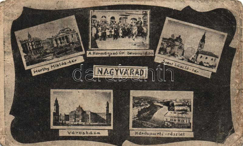 Nagyvárad, bevonulás, Horthy Miklós tér, Szent László tér, Városháza, Kőrös part / entry of the Hungarian troops, Horthy, square, town hall, river (b)