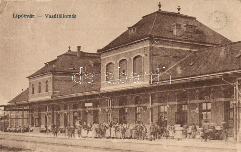 Lipótvár railway station (fa) https://www.darabanth.com/de/182-Fernauktion/182.0/Ansichtskarten/Slowakei~200008/Lipotvar-railway-station-fa~II652592