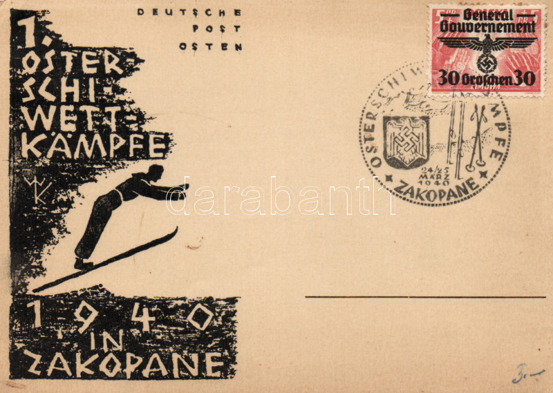 First Easter Ski Championship in Zakopane 1940 So.Stpl https://www.darabanth.com/de/182-Fernauktion/182.0/Ansichtskarten/Sport~400391/First-Easter-Ski-Championship-in-Zakopane-1940-SoStpl~II541003