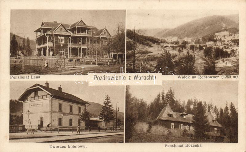 Vorokhta, Worochty; Pensionat Lena and Bozenka, Dworzec kolejowy / hot... https://www.darabanth.com/de/182-Fernauktion/182.0/Ansichtskarten/Ukraine~400402/Vorokhta-Worochty-Pensionat-Lena-and-Bozenka-Dworzec-kolejowy-hotels-raiway-station~II607302