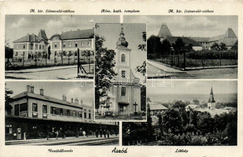 Aszód, vasútállomás, Fiúnevelő otthon, Római katolikus templom (kis sz... https://www.darabanth.com/de/182-Fernauktion/182.0/Ansichtskarten/Ungarn~200006/Aszod-vasutallomas-Fiunevelo-otthon-Romai-katolikus-templom-kis-szakadas-small-tear~II655468