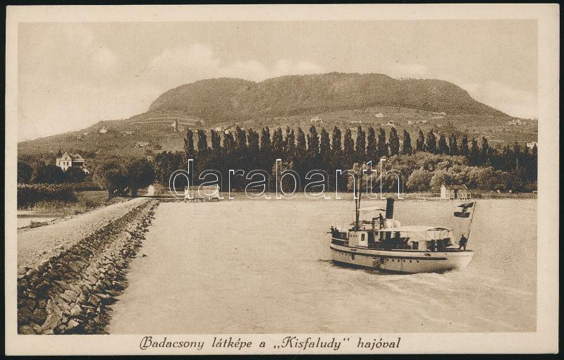 Badacsony a Kisfaludy hajóval (fl) https://www.darabanth.com/de/182-Fernauktion/182.0/Ansichtskarten/Ungarn~200006/Badacsony-a-Kisfaludy-hajoval-fl~II631370