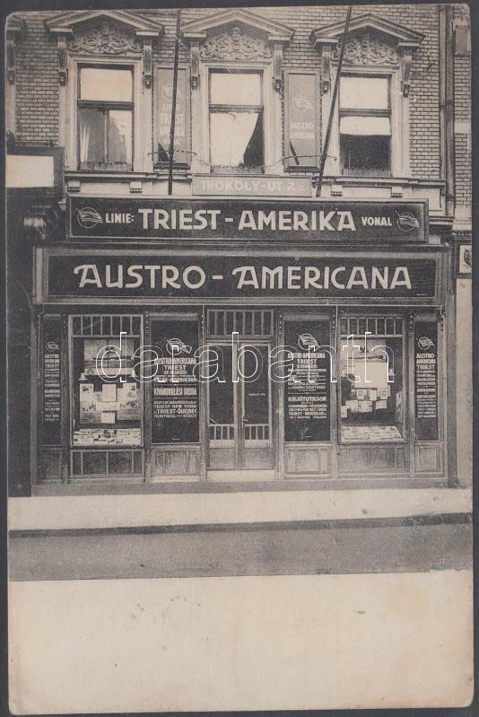 Budapest VII. Thököly út 2., Austro-Americana utazási iroda (fl) https://www.darabanth.com/de/182-Fernauktion/182.0/Ansichtskarten/Ungarn~200006/Budapest-VII-Thokoly-ut-2-Austro-Americana-utazasi-iroda-fl~II653297