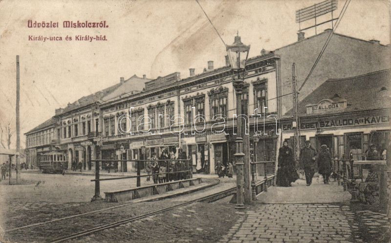 Miskolc Király utca és a Károly-híd az Erzsébet Szállodával és villamo... https://www.darabanth.com/de/182-Fernauktion/182.0/Ansichtskarten/Ungarn~200006/Miskolc-Kiraly-utca-es-a-Karoly-hid-az-Erzsebet-Szallodaval-es-villamossal-EK~II405934
