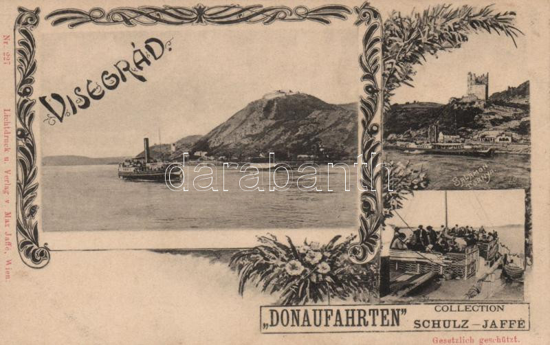 Visegrád, Dunai hajózás, Salamon tornya, floral https://www.darabanth.com/de/182-Fernauktion/182.0/Ansichtskarten/Ungarn~200006/Visegrad-Dunai-hajozas-Salamon-tornya-floral~II619704