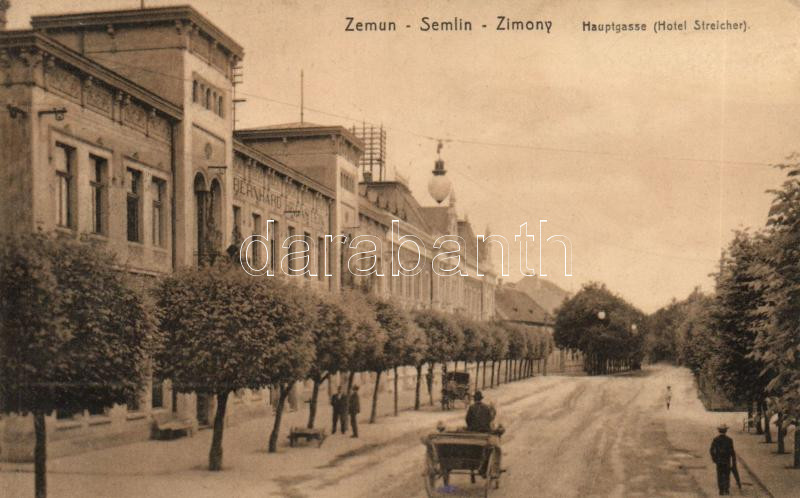 Zimony main street, Bernhard & Kronstein's (Rb) https://www.darabanth.com/de/182-Fernauktion/182.0/Ansichtskarten/Vojvodina~200011/Zimony-main-street-Bernhard-Kronsteins-Rb~II654714