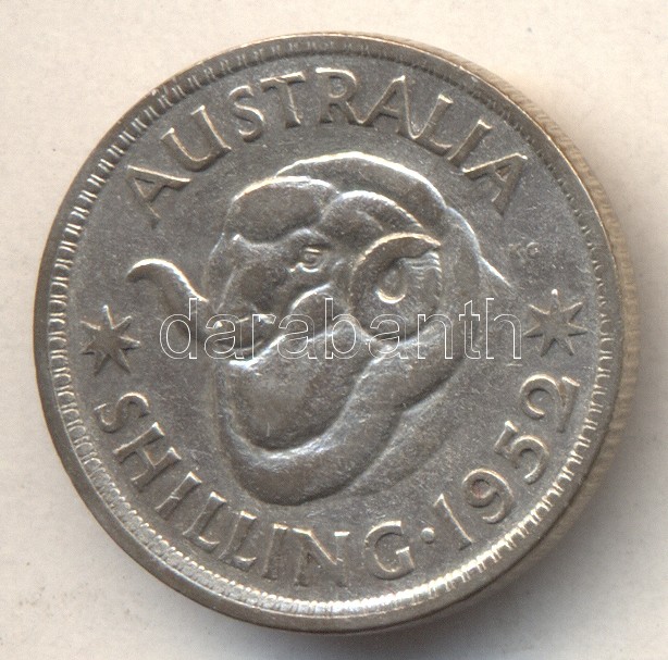 Australia 1952. 1 Shilling Ag C:VF https://www.darabanth.com/de/182-Fernauktion/182.0/Numismatik/Auslandische-Munzen~400433/Ausztralia-1952-1Sh-Ag-T2--3Cbr3EAustralia-1952-1-Shilling-Ag-CVF~II628507