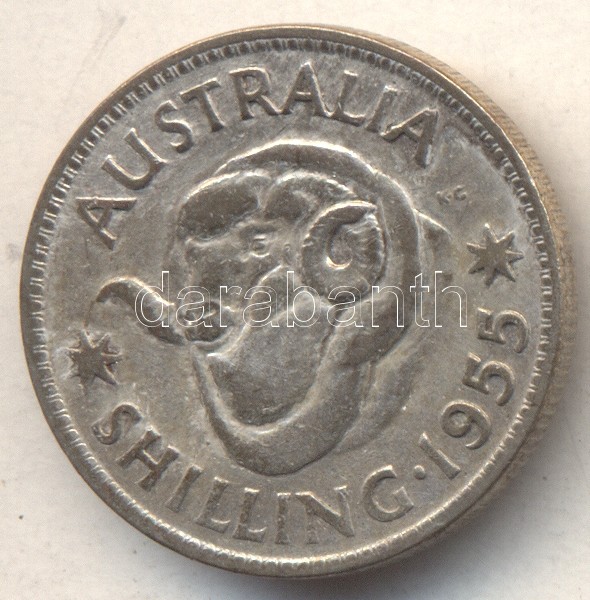 Australia 1955. 1 Shilling Ag C:VF https://www.darabanth.com/de/182-Fernauktion/182.0/Numismatik/Auslandische-Munzen~400433/Ausztralia-1955-1Sh-Ag-T2--3Cbr3EAustralia-1955-1-Shilling-Ag-CVF~II628513