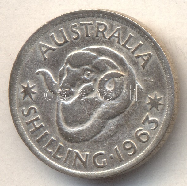 Australia 1963. 1 Shilling Ag C:VF https://www.darabanth.com/de/182-Fernauktion/182.0/Numismatik/Auslandische-Munzen~400433/Ausztralia-1963-1Sh-Ag-T2--3Cbr3EAustralia-1963-1-Shilling-Ag-CVF~II628520