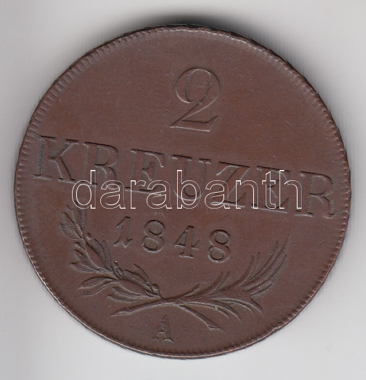 Austria 1848A 2 Kreuzer Cu C:XF,VF https://www.darabanth.com/de/182-Fernauktion/182.0/Numismatik/Auslandische-Munzen~400433/Ausztria-1848A-2Kr-Cu-T2-2--3Cbr3EAustria-1848A-2-Kreuzer-Cu-CXF-VF~II649965