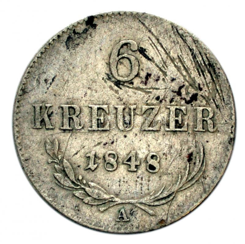 Austria 1848A 6 Kreuzer Ag C:VF,F https://www.darabanth.com/de/182-Fernauktion/182.0/Numismatik/Auslandische-Munzen~400433/Ausztria-1848A-6Kr-Ag-T2-3-3Cbr3EAustria-1848A-6-Kreuzer-Ag-CVF-F~II655417