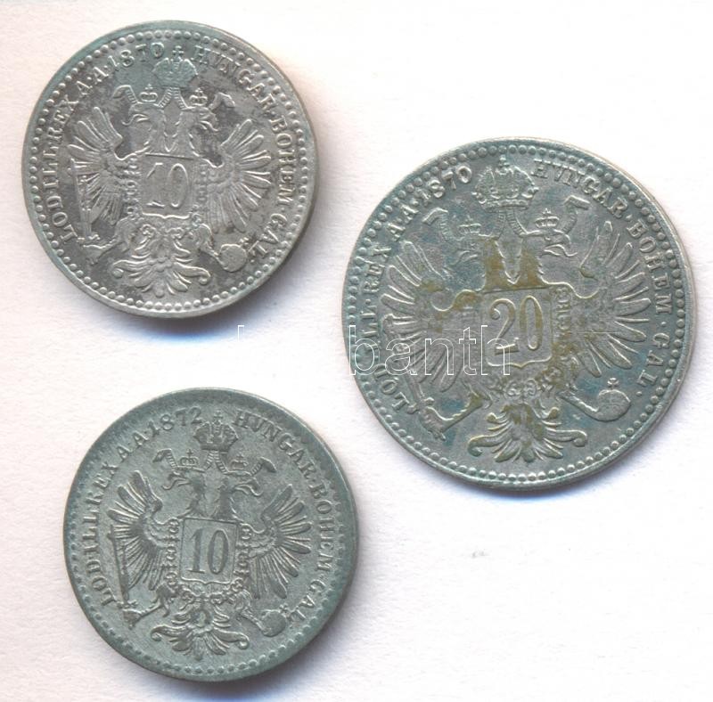 Ausztria 1870. 10Kr Ag + 20Kr Ag + 1872. 10Kr Ag T:3