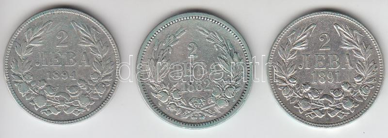 Bulgaria 1882. 2 Leva Ag + 1891. 2 Leva Ag + 1894. 2 Leva Ag C:XF,VF
