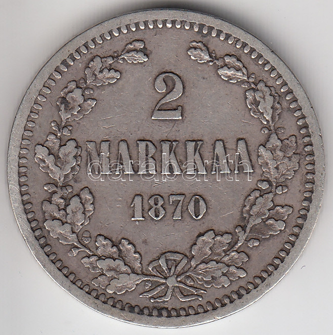 Finland 1870. 2 Markka Ag C:VF https://www.darabanth.com/de/182-Fernauktion/182.0/Numismatik/Auslandische-Munzen~400433/Finnorszag-1870-2M-Ag-T2--3Cbr3EFinland-1870-2-Markka-Ag-CVF~II654043