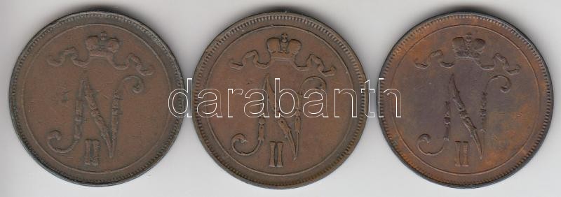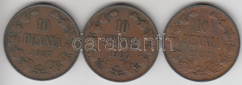 Finnország 1905. 10p Cu + 1907. 10p Cu + 1908. 10p Cu T:3