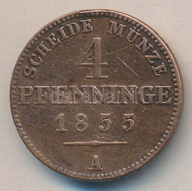 German States / Prussia ... https://www.darabanth.com/de/182-Fernauktion/182.0/Numismatik/Auslandische-Munzen~400433/Nemet-Allamok-Poroszorszag-1855A-4Pf-Cu-T3-3Cbr3EGerman-States-Prussia-1855A-4-Pfenninge-Cu-C~II627597