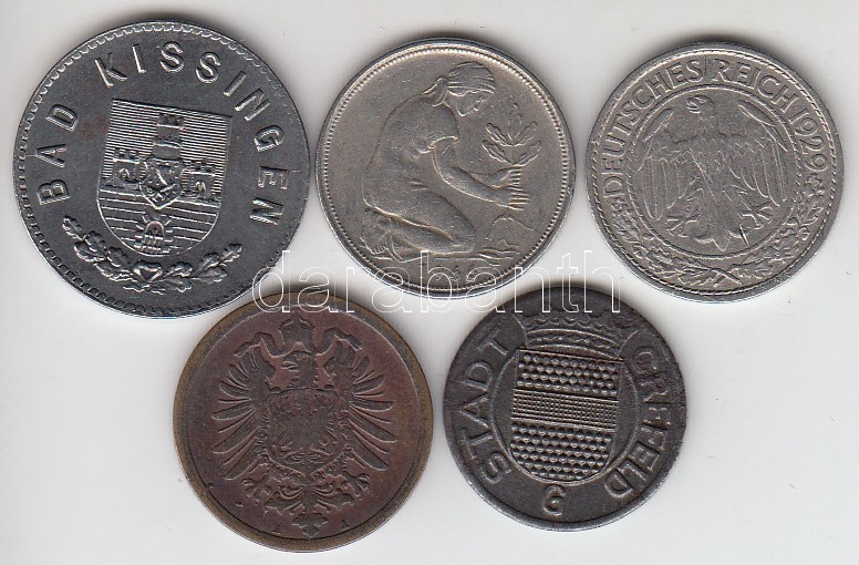Beschreibung: Németország DN. 5db klf fémpénz, közte 2db szükségpénz T:vegyes