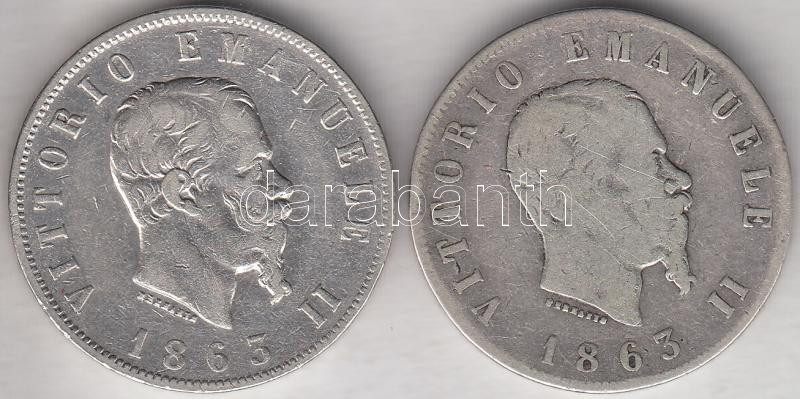 Beschreibung: Olaszország 1863. 2L Ag "II. Viktor Emanuel" (2x) klf változat T:2-,3