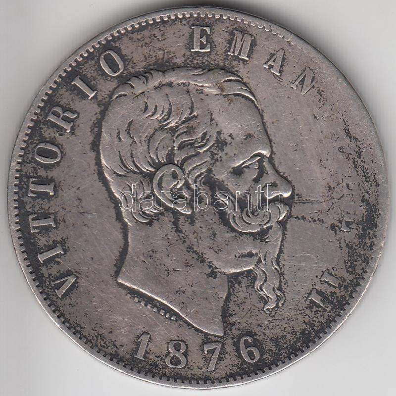 Italy 1876. 5 Lire Ag C:VF https://www.darabanth.com/de/182-Fernauktion/182.0/Numismatik/Auslandische-Munzen~400433/Olaszorszag-1876-5L-Ag-T2--3Cbr3EItaly-1876-5-Lire-Ag-CVF~II654383