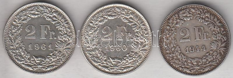 Svájc 1940. 2Fr Ag + 1960. 2Fr Ag + 1961. 2Fr Ag T:2,2-