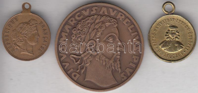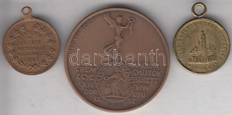 Beschreibung: 3db különféle emlékérem, egyik francia, kettő magyar T:2,2-
