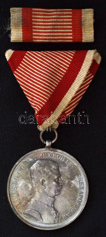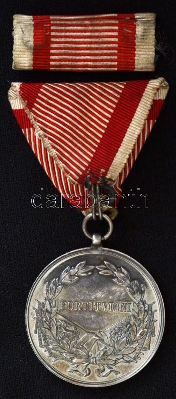 1917. Ezüst Vitézségi Érem I. osztály "Fortitudini / IV. Károly" mellszalaggal és szalagsávval! Szign.: Kautsch (40mm) T:2
