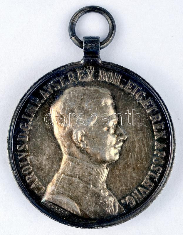 1917. Károly Ezüst Vitézségi Érem II. osztály "Fortitudini / IV. Károly" jelzett "A" kitüntetés mellszalag nélkül Szign.: Kautsch (30mm) T:2