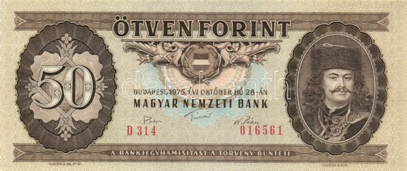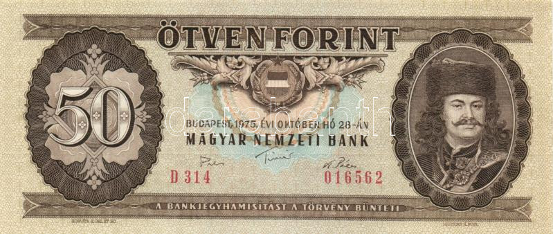 Beschreibung: 1975. 50Ft (2x) egymást követő sorszámmal, egyik vízszintes papírránccal T:I