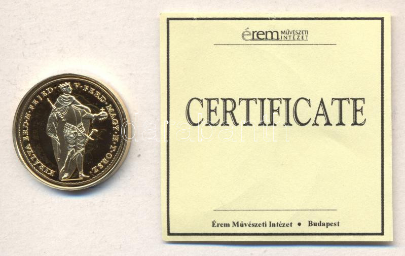 "Magyar aranypénzek utánveretben - V. Ferdinánd dukát" arany... https://www.darabanth.com/de/182-Fernauktion/182.0/Numismatik/Ungarische-Edelmetall-Gedenkmunzen~400430/Magyar-aranypenzek-utanveretben--V-Ferdinand-dukat-aranyozott-Ag0999-emlekerem-55g-T~II600358