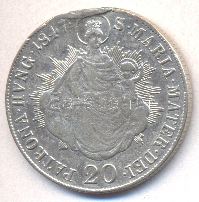 1847B 20Kr Ag "V. Ferdinánd" T:2- Fny. https://www.darabanth.com/de/182-Fernauktion/182.0/Numismatik/Ungarische-Munzen~400429/1847B-20Kr-Ag-V-Ferdinand-T2-Fny~II639398