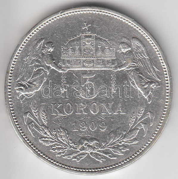 1909. 5K Ag "Ferenc József" T:2-,3 https://www.darabanth.com/de/182-Fernauktion/182.0/Numismatik/Ungarische-Munzen~400429/1909-5K-Ag-Ferenc-Jozsef-T2-3~II652966