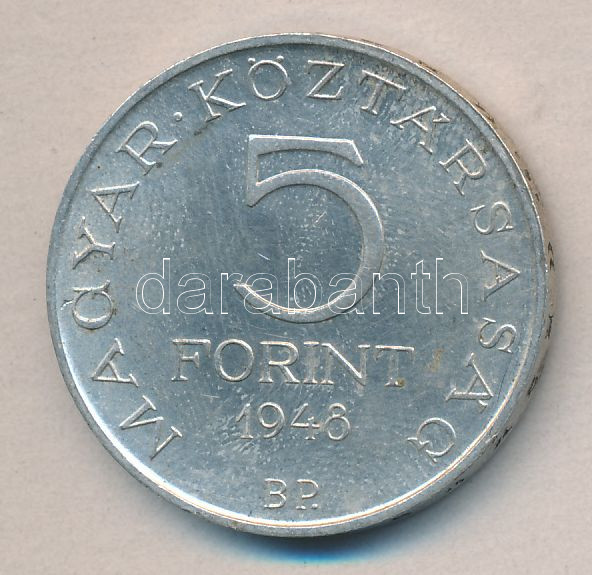 1948. 5Ft Ag "Petőfi" T:2 k. https://www.darabanth.com/de/182-Fernauktion/182.0/Numismatik/Ungarische-Munzen~400429/1948-5Ft-Ag-Petofi-T2-k~II591767