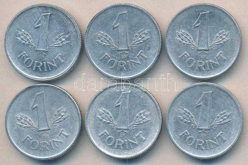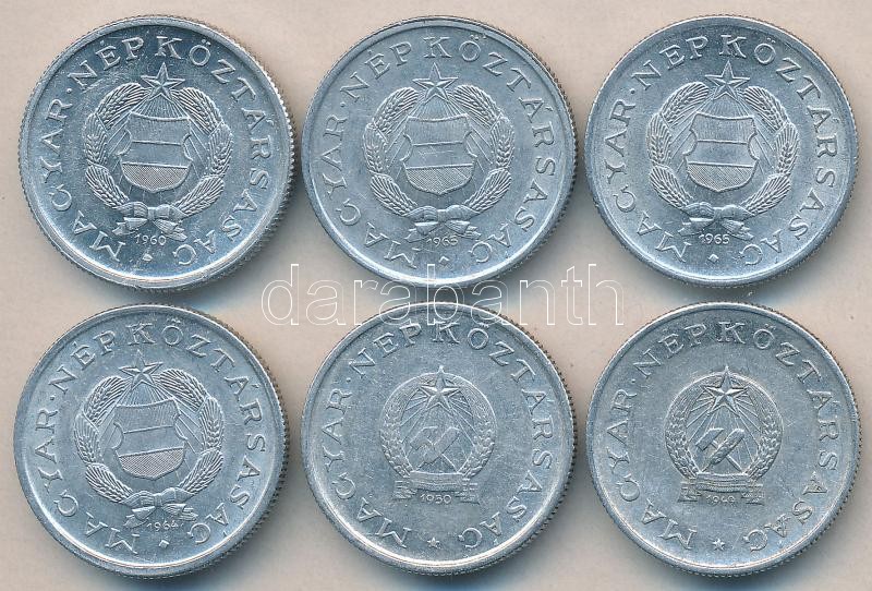 1949/50. 1Ft Al (2x) + 1960-65. 1Ft Al (4x) 3féle T:1,1-,2,2- https://www.darabanth.com/de/182-Fernauktion/182.0/Numismatik/Ungarische-Munzen~400429/194950-1Ft-Al-2x-plus-1960-65-1Ft-Al-4x-3fele-T1-1-2-2--3Cbr3E~II633404