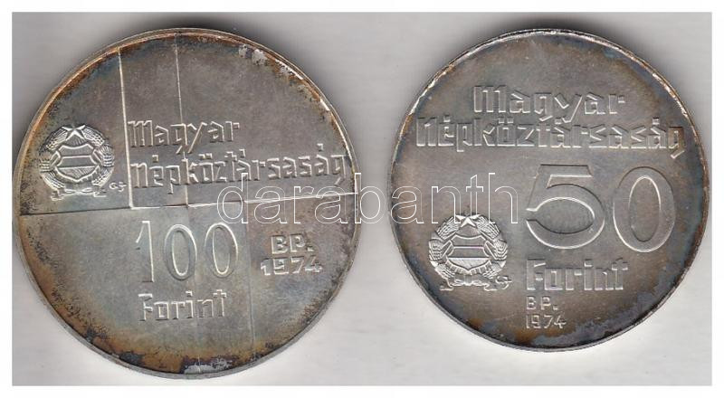 1974. 50Ft Ag + 100Ft Ag "50 éves az MNB" T:BU https://www.darabanth.com/de/182-Fernauktion/182.0/Numismatik/Ungarische-Munzen~400429/1974-50Ft-Ag-plus-100Ft-Ag-50-eves-az-MNB-TBU~II655597