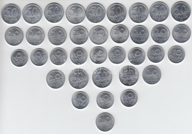 1974-85. 10f Al + 20f Al + 50f Al, összesen 36db! T:1 https://www.darabanth.com/de/182-Fernauktion/182.0/Numismatik/Ungarische-Munzen~400429/1974-85-10f-Al-plus-20f-Al-plus-50f-Al-osszesen-36db-T1~II655768