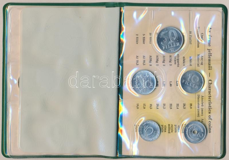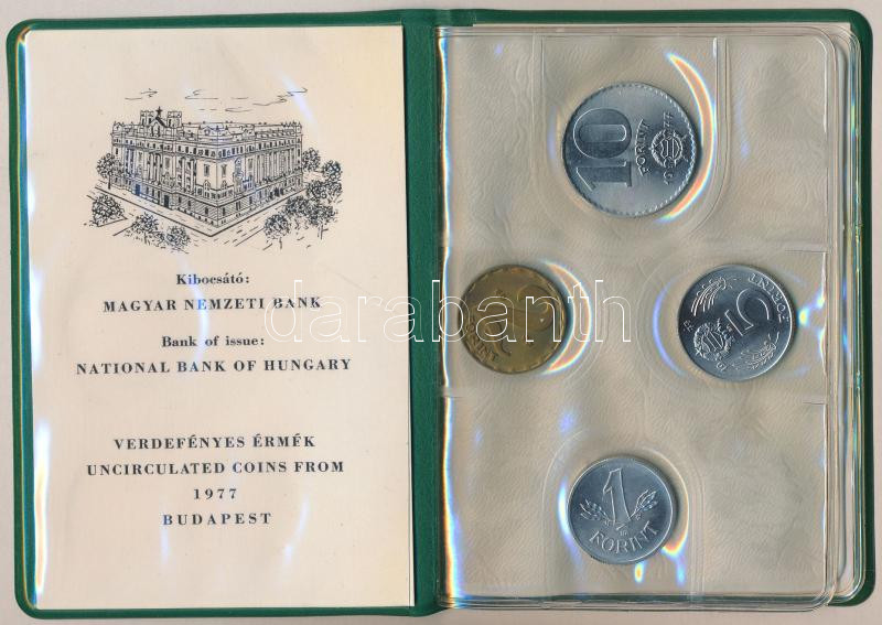 1977. 2f-10Ft 9klf "Magyar Népköztársaság" forgalmi érméi mé... https://www.darabanth.com/de/182-Fernauktion/182.0/Numismatik/Ungarische-Munzen~400429/1977-2f-10Ft-9klf-Magyar-Nepkoztarsasag-forgalmi-ermei-meregzold-mubortokban-T1~II627841