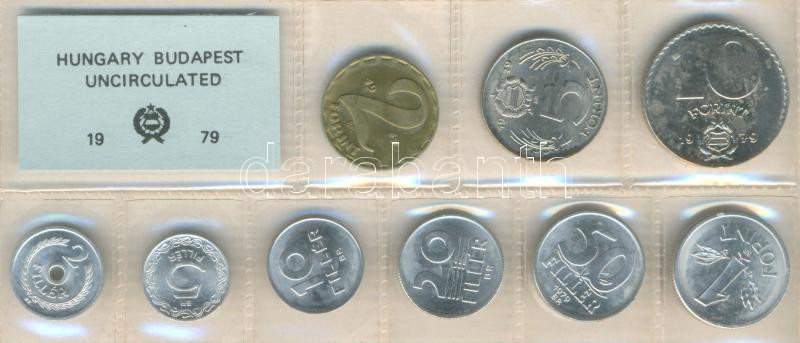 1979. 2f-10Ft 9db klf érmés forgalmi sor fóliatokban T:1 https://www.darabanth.com/de/182-Fernauktion/182.0/Numismatik/Ungarische-Munzen~400429/1979-2f-10Ft-9db-klf-ermes-forgalmi-sor-foliatokban-T1~II595439