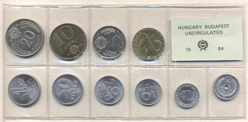 1984. 2f-20Ft 10db klf érmés forgalmi sor fóliatokban T:1 https://www.darabanth.com/de/182-Fernauktion/182.0/Numismatik/Ungarische-Munzen~400429/1984-2f-20Ft-10db-klf-ermes-forgalmi-sor-foliatokban-T1~II638144