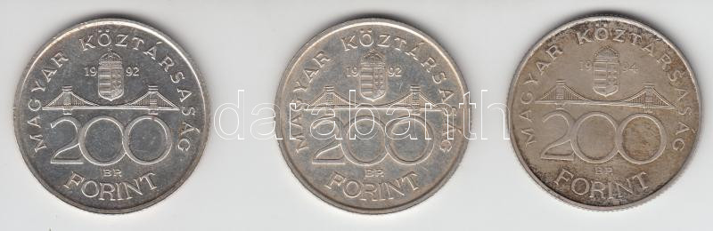 1992-94. 200Ft Ag (3x) MNB / Deák T:2,2- https://www.darabanth.com/de/182-Fernauktion/182.0/Numismatik/Ungarische-Munzen~400429/1992-94-200Ft-Ag-3x-MNB-Deak-T2-2-~II652923