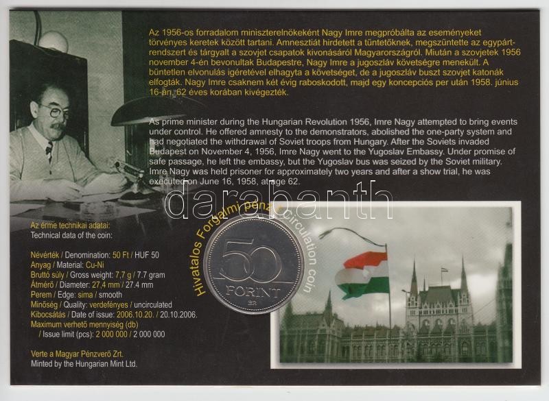 Beschreibung: 2006. 50Ft "A mártír miniszterelnök emlékére emlékkiadás emléklapon T:1