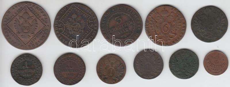 Beschreibung: Ausztria/magyar verdejel 1800S 1Kr (4x) + 3Kr + 6Kr + 15Kr + 30Kr + 1812S 1Kr (2x) + 3Kr + 1816S 1/4Kr T:2,2-,3,3-