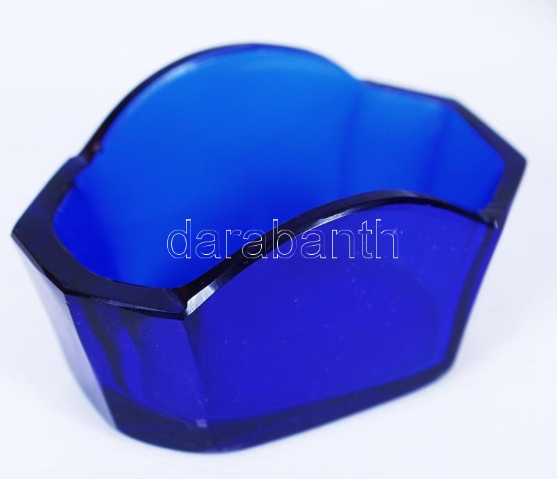 A pair of silver plated salts with original, chiselled blue glass containers, 6,5x4x4cm