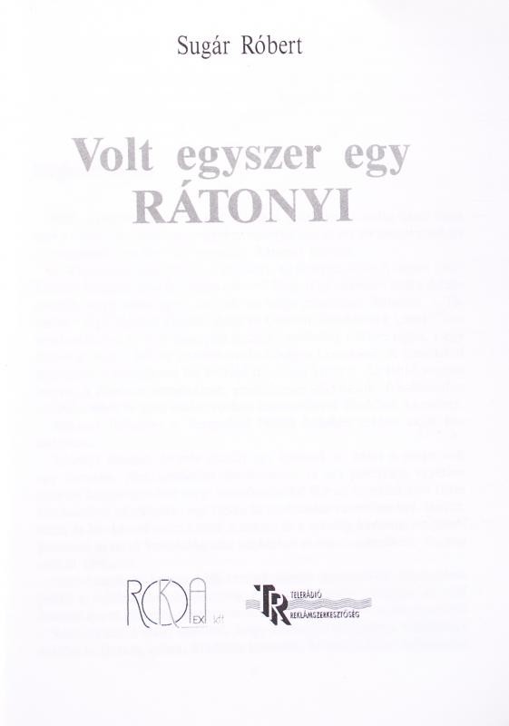 Sugár Róbert: Volt egyszer egy Rátonyi. Dedikált! Bp., 1993. https://www.darabanth.com/de/183-Fernauktion/183.0/Andere-Sammelgebiete/Bucher-Sonstige-Raritaten~5000037/Sugar-Robert-Volt-egyszer-egy-Ratonyi-Dedikalt-Bp-1993~II658300