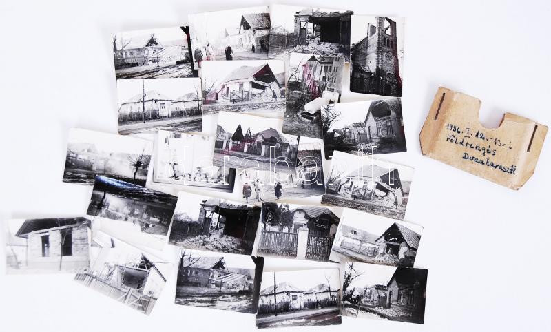 Beschreibung: 1956. jan. 12-13. 22db miniatűr fénykép (kontakt kópia kisfilmről) a dunaharaszti földrengés pusztításáról