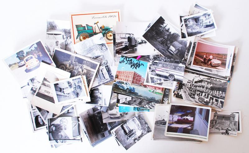 98db régi és modern fénykép és képeslap autókról, motorokról, buszokról, magyar és külföldi anyag vegyesen /